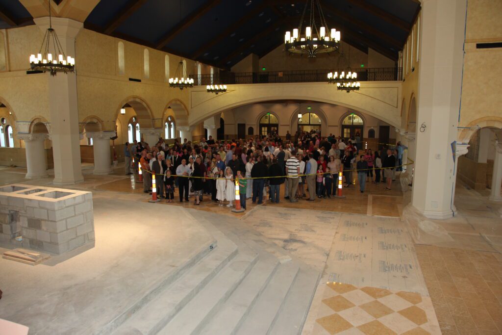 In 2003, Father Charlie Klinger and parish leadership began a period of discernment and long range planning focused on the future of the parish campus and the need for a new church. Parishioners were invited into the process through surveys that gathered input on worship space, parish facilities, and broader campus needs. At the same time, demographic studies were conducted to better understand future growth and guide decisions about the size and scope of the project.