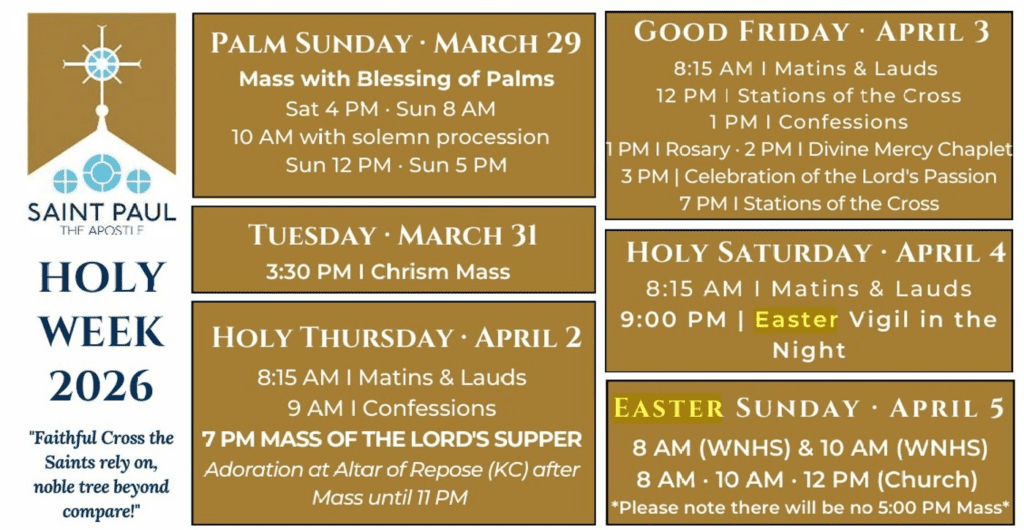 2026 St. Paul the Apostle Holy Week Schedule